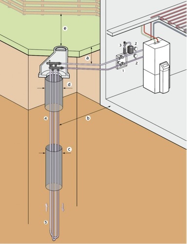 Die Erdsonde ist besonders für kleine Grundstücksflächen geeignet, auf denen nicht genügend Platz für die Installation eines Erdkollektors vorhanden ist. Das Rohrsystem der Erdsonde wird über Tiefenbohrungen in der Regel bis zu 99 m senkrecht in den Boden eingebracht (Genehmigung durch Wasserbehörde). Bei größeren Anlagen können Tiefenbohrungen über 100 m sinnvoll sein (Genehmigung nach Bergrecht). Bei Bedarf kann die Sondenlänge auf mehrere Bohrungen aufgeteilt werden.