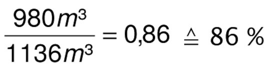 Mit der Altanlage hätte er voraussichtlich 1136 Kubikmeter Gas verbraucht. Setzt man nun den tatsächlichen Verbrauch (980 m³) zum theoretischen Verbrauch (113 m³) ins Verhältnis, so ergibt sich eine Einsparung trotz der absolut nur sehr geringen Verringerung des Gasverbrauchs von 20 m³ also 2 Prozent.