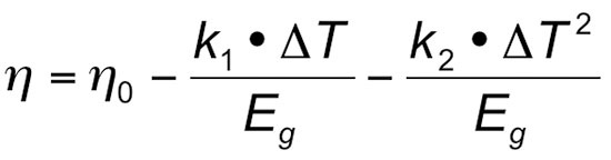 Man unterscheidet für Kollektoren allgemein drei Einflussfaktoren auf den jeweiligen Wirkungsgrad. Einer dieser Einflüsse ist unabhängig von der Umgebungstemperatur. Dies betrifft den so genannten optischen Wirkungsgrad. Gemeint ist damit der Anteil des Sonnenlichts der durch die schützende Glashülle zum Absorber dringt. Werte für moderne Flachkollektoren liegen meistens etwas höher als für Röhrenkollektoren. Dies resultiert, wie bereits beschrieben, aus der Tatsache, dass das Licht beim VRK zweimal das Glas durchschreiten muss. Als weitere Größe ergibt sich eine Verlustleistung des Kollektors bei seiner Erwärmung. Diese nimmt naturgemäß mit steigender Temperaturdifferenz zur Umgebung zu. Ein Teil dieser Wärme wird durch Konvektion ein anderer durch Strahlung abgegeben. Man unterscheidet daher zwei so genannte Wärmeverlustbeiwerte, nämlich k1 und k2 (herstellerabhängig auch a1 und a2). Die Formel zur Ermittlung des gesamten Kollektorwirkungsgrades berücksichtigt daher diese drei Einflüsse nach folgender Formel: