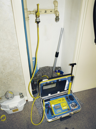 Zunächst muss sicher sein, dass die Leitung keine Korrosionsschäden hat. Das wird überprüft, indem man die Leitung einer Belastungsprobe unterzieht. Wenn es tatsächlich Schwachstellen gibt, sollen die dabei erkannt werden. Bevor die Belastungsprobe durchgeführt wird, müssen natürlich Gaszähler, Armaturen sowie Gas-Druckregelgeräte ausgebaut und die Gasgeräte von der Leitung abgetrennt werden. Die Belastungsprobe wird dann mit inerten Gas (z. B. Stickstoff), jedoch nicht mit Sauerstoff, einem Prüfdruck von 3 bar und einer Prüfzeit von etwa drei bis fünf Minuten vorgenommen. Da ein plötzlich auftretender Korrosionsschaden mit abplatzenden korrodierten Metallteilen einhergehen kann, sollte man sicherstellen, dass sich während der Druckbeaufschlagung niemand in unmittelbarer Nähe der Leitung aufhält. Gibt es während der Belastungsprobe keine bösen Überraschungen, wird danach nochmals die Gasleckmenge ermittelt. Der erneut gemessene Leckagewert soll mit dem Wert der ersten Messung übereinstimmen. Ist die Leckage durch die Belastungsprobe größer geworden, liegt ihre Ursache wahrscheinlich nicht (nur) bei undichten Gewinden. In dem Fall sollte die Leitung besser erneuert werden.