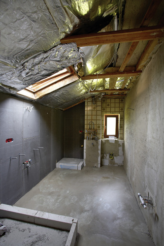 In den 70iger Jahren stand der Selbstzweck im Vordergrund bei der Gestaltung eines Bades. Die Verrichtung der Körperhygiene musste möglich sein. Die Optik und die Frage nach bequemer Benutzungsmöglichkeit standen dabei erst an zweiter Stelle. So ist es auch zu erklären, dass man im Punkte des Platzbedarfs auch eher sparsam mit dem Raum umging, den man - ebenso reduziert - eben nur „Bad“ nannte. Die Ansprüche haben sich zwischenzeitlich geändert. Und so war auch die Familie Stasny schon längst nicht mehr richtig glücklich mit ihren sanitären Gegebenheiten. Nun sollte mit der Renovierung ein Badezimmer entstehen, das komfortablen, qualitativ hochwertigen Nutzen mit moderner Gestaltung verbindet. Für die Badsanierung wurde der SHK-Betrieb Brunner aus Prackenbach beauftragt. Nach ausführlicher Beratung durch die Sanitärprofis von Brunner fiel die Wahl bei der Wärmeübertragung auf eine Fußbodenheizung. Außerdem sollte zusätzlich ein Badheizkörper eingesetzt werden.