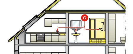 Bei der Einzelversorgung wird - wie die Bezeichnung schon vermuten lässt - einer einzigen Warmwasserentnahmestelle ein eigener Warmwasserbereiter zugeordnet. Diese Lösung bietet sich an, wenn eine Entnahmestelle nachträglich mit warmem Wasser versorgt werden soll oder wenn die Entnahmestelle in größerer Entfernung von einer Warmwasser führenden Leitung liegt. Das ist zum Beispiel bei einer Planung der Fall, die das Gäste-WC oder die Küche an ganz anderer Stelle vorsieht als die anderen sanitären Einrichtungen. Eine lange Warmwasser-Einzelzuleitung müsste entweder mit einem Warmhaltesystem (Begleitheizung oder Zirkulationsleitung) ausgestattet werden – oder man nimmt in Kauf, längere Zeit auf warmes Wasser warten zu müssen. Genau das ist z. B. an einem Handwaschbecken unsinnig: bis dort das warme Wasser ankommt, hat es der Gast vorgezogen, sich mit kaltem Wasser die Hände zu waschen. Die Warmwasserbereitung als Einzelversorgung löst dieses Problem. Die Wassererwärmung erfolgt hier meistens mittels eines kleinen, offenen Speicher-Wassererwärmers, der elektrisch beheizt wird. Die Tatsache, dass sie nur begrenzte Wassermengen bereitstellen (in der Regel fünf Liter), fällt an einem Handwaschbecken nicht ins Gewicht. Sind die elektrischen Voraussetzungen gegeben, können kleine, elektrische Durchfluss-Wassererwärmer eingebaut werden. Da sie einen unbegrenzten Volumenstrom liefern, sollte die Wahl auf sie fallen, wenn eine Küchenspüle zu versorgen ist. Mit dieser Wassererwärmung direkt am Ort des Geschehens vermeidet man Wartezeiten und verringert die Energieverluste.