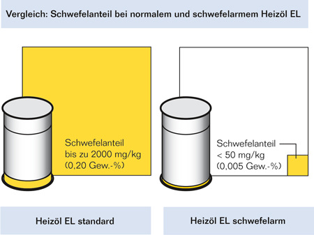 Und es spricht noch mehr dafür, dass Heizöl EL schwefelarm zum neuen „Standard“ wird. Denn die Bundesregierung besteuert schwefelhaltiges Heizöl EL Standard vom 1. Januar 2009 an zusätzlich mit 1,5 Cent je Liter. Weiterführende Überlegungen gehen dahin, Heizöl EL schwefelarm zum Bestandteil künftiger neuer Förderprogramme zu machen. Der Mineralölhandel wird im gleichen Zeitraum eine flächendeckende Versorgung sicherstellen. So kann die „breite Masse“ der Betreiber von Ölheizungen durch den neuen Brennstoff und neue Technologien einen wesentlichen Beitrag zu Umweltschutz, Energie- und Kosteneinsparung leisten und ohne Brennstoffwechsel die Abhängigkeit reduzieren.