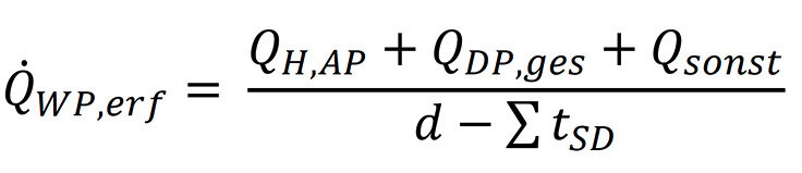 Nun ermitteln wir den Heizwärmebedarf QH, AP, dies ist die Energiemenge für die Raumheizung über 24 h.