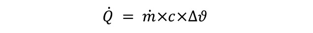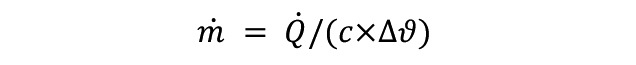 Damit die gewählte und ausgelegte Wärmestromdichte auch wirksam wird, ist ein weiterer leistungsrelevanter Faktor notwendig. Die Heizmitteltemperatur als solche ist nichts als ein Zahlenwert. Um die gewünschte Oberflächentemperatur zu erreichen, ist eine Wärmemenge notwendig, welche über einen entsprechenden Massenstrom sicherzustellen ist und sich durch Umstellung der folgenden Formel