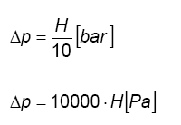 Zwischen den beiden Pumpenanschlüssen entsteht im Betrieb der Pumpe ein Differenzdruck. Dieser Differenzdruck = ∆p (delta Druck) bestimmt die Förderhöhe der Pumpe = ∆H (delta Höhe). Dabei kann man folgende Vereinfachung zu Grunde legen: