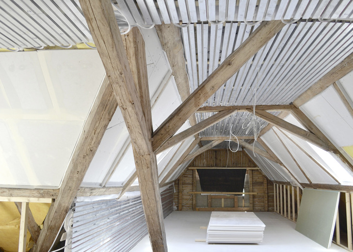 Egal ob Holz oder Beton – die Klimadeckenprofile können auf jeden Deckenuntergrund montiert werden. Je nach Objekt kann sogar auf den Estrich verzichtet werden. Die Gesamthöhe beträgt bei direkter Montage an der Decke nur 30 mm. Bei Balkendecken mit und ohne Dachschräge lassen sich die Profile zwischen den Balken montieren, um keine Raumhöhe zu verlieren. Soll die Decke abgehängt werden, etwa um Lüftung und Elektrik diskret zu verlegen, dann können die Profile auf Konterlatten oder Tragprofilen montiert werden.