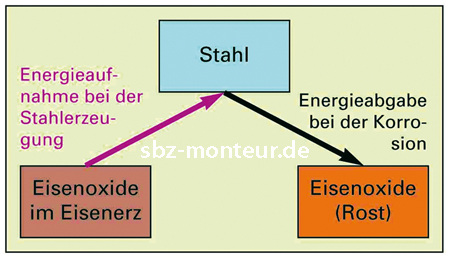 Im Heizungsbau kommen vorwiegend metallische Werkstoffe und zum Teil Kunststoffe zum Einsatz. Alle diese Werkstoffe unterliegen der Korrosion. Im Prinzip werden sie alle aus Erzen gewonnen, wobei die metallischen Vertreter wie beispielsweise Kupfer, Eisen und Aluminium aus den Oxiden (Verbindungen mit Sauerstoff) stammen.