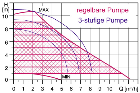 Die technischen Vorgaben sind also eindeutig und fordern das, was technisch seit langer Zeit verfügbar ist, nämlich selbstregelnde Pumpen. Aber es kommt letztlich auch auf den fachlich versierten Experten an, der die Vorteile dieser kleinen computergesteuerten Drehwürmer entsprechend an den Endkunden heranträgt und diesen in seinem eigenen Interesse davon überzeugt.