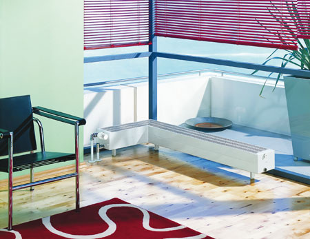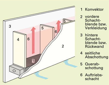 Auch wenn man hinter dem Begriff „Konvektor“ eher eine Krokodilart vermutet, ist es die Fachbezeichnung für einen speziellen Typ Heizkörper. Bei Konvektoren erfolgt die Wärmeabgabe zu 95% durch Konvektion und nur zu 5% durch Strahlung. Konvektoren bestehen aus Heizrohren mit ovalen oder runden Öffnungen, die zur Vergrößerung der Heizflächen mit Lamellen bestückt sind. Zur Erhöhung der Heizleistung werden Konvektoren in einen Schacht oder hinter einer schachtähnlichen Verkleidung eingebaut. Man unterscheidet Nischen-, Sockel- und Unterflurkonvektoren. Die Materialien, aus denen Konvektoren hergestellt werden, sind meistens Aluminium, Kupfer oder Stahl. Konvektoren benötigen weniger Heizwasser als ihre Verwandten, die Radiatoren, deshalb sind sie meist auch leichter. Der geringe Wasserinhalt ermöglicht den Konvektoren eine schnellere Aufheizung der Wohnräume. Durch einen Schacht strömt kalte Luft ein, die sich an den Lamellen erwärmt, aufsteigt und schließlich durch Auslassschlitze wieder austritt. Die Vorteile von Konvektoren liegen bei ihren Einsatzmöglichkeiten in Fußböden, Schaufenstern oder vor Terrassentüren. Durch den Einsatz in Fußböden gehen jedoch rund 30 % der Heizleistung verloren. Ein weiterer Nachteil sind die schlechten Reinigungsmöglichkeiten und die durch die Luftumwälzung bedingte verstärkte Staubaufwirbelung. Nachteilig ist auch der geringe Anteil an Strahlungswärme. Viele Menschen klagen oftmals durch die starke Luftumwälzung über Zugerscheinungen. Im Hinblick auf Energieeinsparung sind Konvektoren nicht empfehlenswert. Ein weiterer Nachteil der Konvektoren gegenüber den Radiatoren liegt in den höheren Anschaffungskosten.