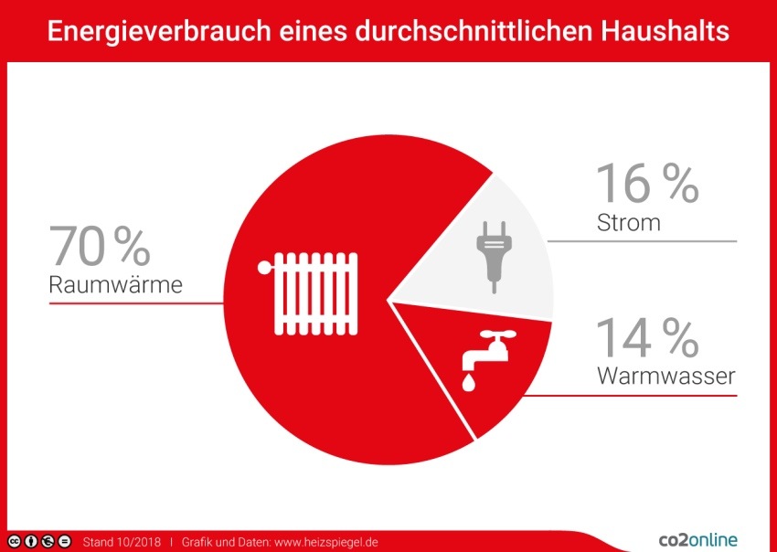 Wer seine Heizkosten und CO2-Emissionen senken möchte, sollte an den Beginn der Heizsaison am 1. Oktober denken. Darauf macht die gemeinnützige Beratungsgesellschaft co2online (www.co2online.de) aufmerksam. Denn in den kommenden kalten Monaten wird in der Regel im Haushalt die meiste Energie verbraucht. Im Schnitt entfallen jährlich 70 Prozent auf die Heizung, deutlich weniger auf Strom und Warmwasser.