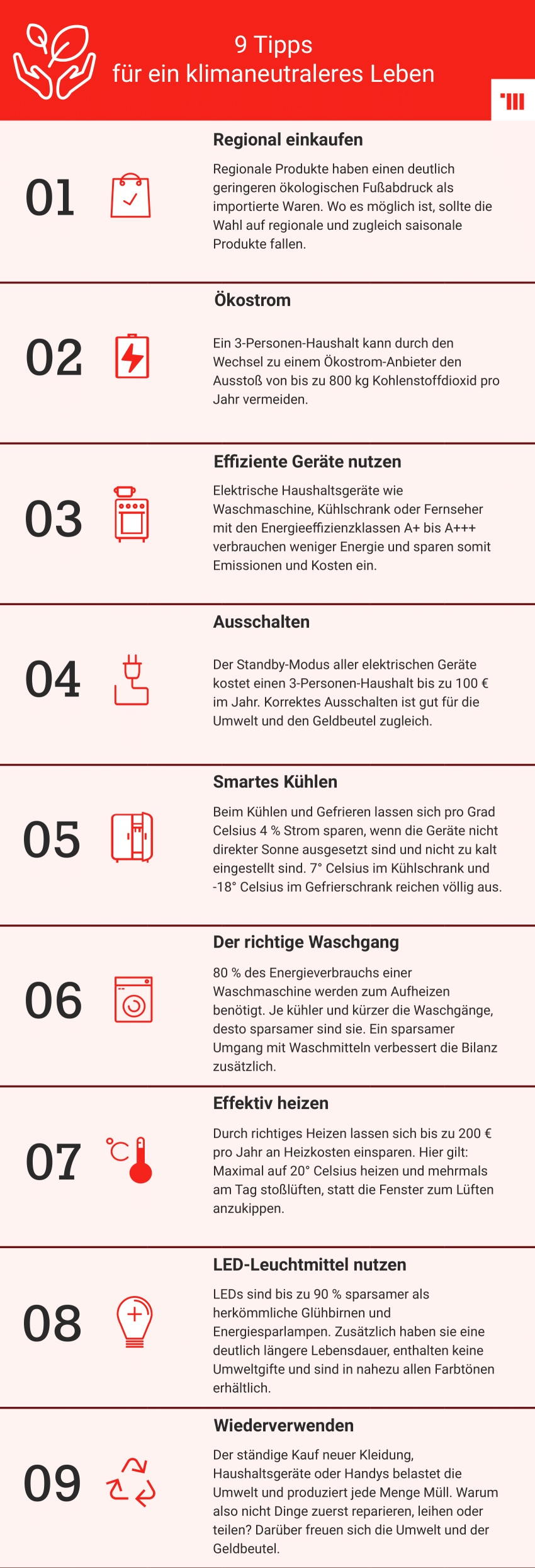 heizung.de präsentiert praktische Tipps für ein klimaneutraleres Leben: Neben der Nutzung von Ökostrom und effizienten Geräten kann auch die Einstellung des Kühlschranks und die Wahl des Waschmaschinen-Programms jeden Tag den CO2-Ausstoß reduzieren. Und wer den Tipp zum effizienten Heizen beherzigt, kann dabei sogar noch richtig Geld sparen.