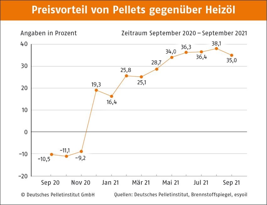 Der Pelletpreis ist im September bundesweit leicht gestiegen. Durchschnittlich kostet eine Tonne (t) 236,67 Euro (Abnahme 6 t), berichtet das Deutsche Pelletinstitut (DEPI). Das entspricht einem Plus von 2,0 Prozent zum August und von 6,0 Prozent zum Vorjahr. Ein Kilo Pellets kostet 23,67 Cent, die Kilowattstunde (kWh) Wärme 4,73 Cent. Der Preisvorteil zu Heizöl und Erdgas beträgt 35 bzw. 27 Prozent.