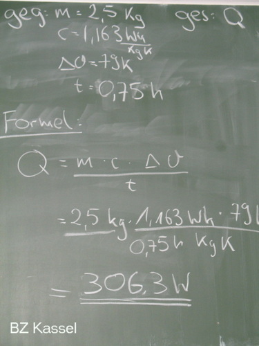 Die Frage des Ausbildungsleiters lautete: "Wieviel Wärmeenergie wird benötigt um das Wasser in 45 Minuten auf eine Temperatur von 100° zu erwärmen?