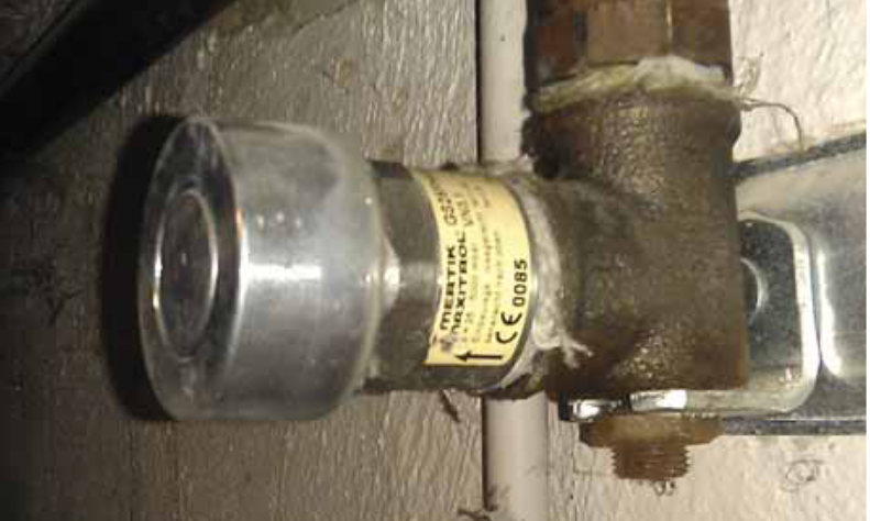 Die hier gezeigte Gasleitung ist äußerst pfiffig gegen Manipulation gesichert worden. Jedenfalls bräuchte der potenzielle Täter, nennen wir ihn Manipulator, einen besonderen Schlüssel, um den extrem manipulationsgesicherten Stopfen aus dem Gasströmungswächter herauszudrehen. Hoffen wir, dass der nicht auf die perfide Idee kommt, den Strömungswächter heraus-zudrehen. Aber dazu braucht es dann doch sehr viel kriminelle Energie.