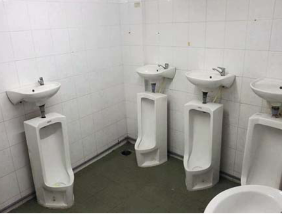 Wenn es einem schon so toll präsentiert wird, dann kann man doch gar nicht daran vorbei. Ganz im Ernst! Diese Kombination zeigt doch jedem Nutzer, was zu tun ist. Erst das kleine Geschäft und dann die Hände waschen. Dabei hilft das seifige Handwaschwasser beim Wegspülen des Urinsteins.