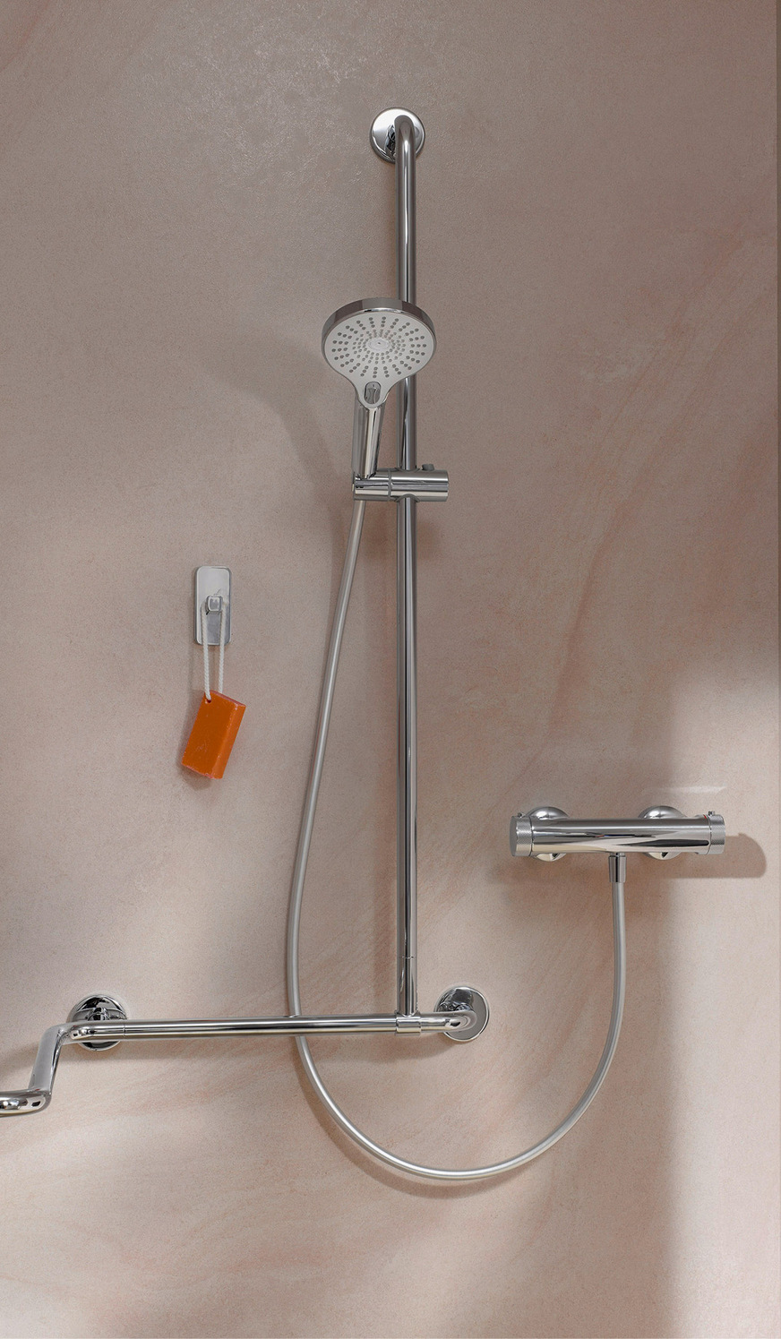 Mit diesen Stützgriff-Varianten für die Innenecken von Duschen, können Fachhandwerker ihren Kunden jetzt noch mehr Sicherheit und Komfort bieten. Denn wo bisher zwei separate Stützgriffe nötig waren, können nun beide Innenwände des Duschbereiches mit nur einem Produkt ausgestattet werden. So wird die Drehbewegung des Körpers beim Duschen erleichtert, da die Hand ununterbrochen am Handlauf entlanggleiten kann. Eine echte Unterstützung im Alltag für Menschen mit eingeschränkter Mobilität.