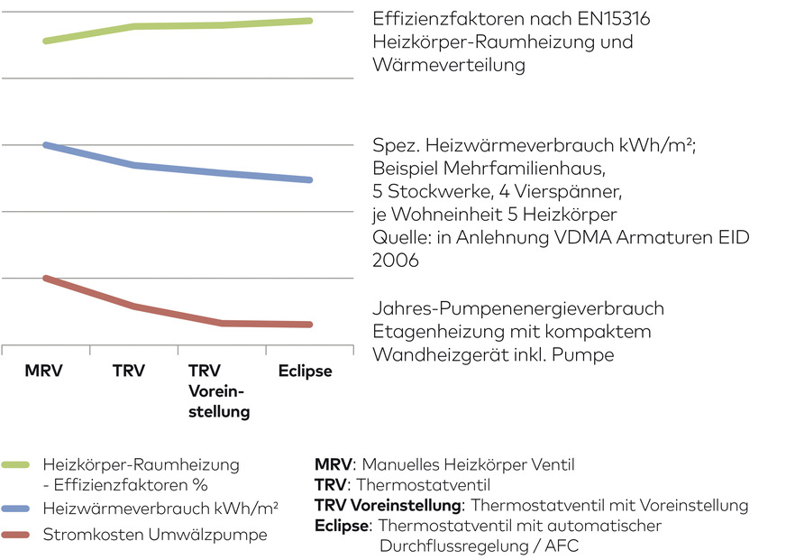 Dieses Ventil der Marke IMI Heimeier regelt den Durchfluss jederzeit unabhängig vom Differenzdruck auf den voreingestellten Wert. Dabei sind Durchflussbereiche von 30 bis 300 l/h möglich. Der Durchfluss wird dadurch selbst im Teillastbetrieb bzw. bei einem Überangebot z. B. aufgrund schließender Nachbarventile oder während der morgendlichen Aufheizphase automatisch auf den eingestellten Wert begrenzt. Deswegen kann mit den Eclipse 300-Ventilen der hydraulische Abgleich mühelos ausgeführt werden.