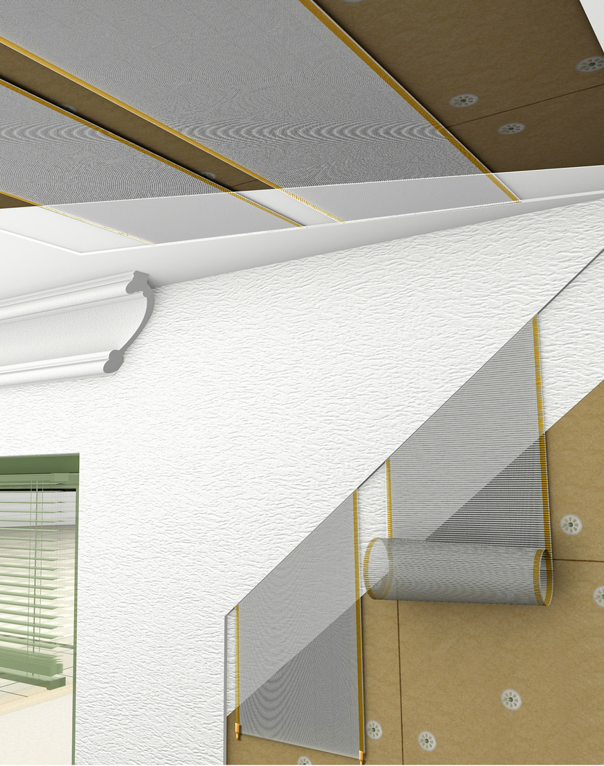 Die nur 0,4 mm dicken und extrem leichten Heizbahnen werden an Decke, Wand, Dachschräge oder Fußboden in den Untergrund eingeputzt. Sie sind einzeln regelbar und bestehen aus Carbonfasern, die sich bei Stromfluss erwärmen. Dies für zur Strahlungswärme nahezu ohne Staubverwirbelungen.