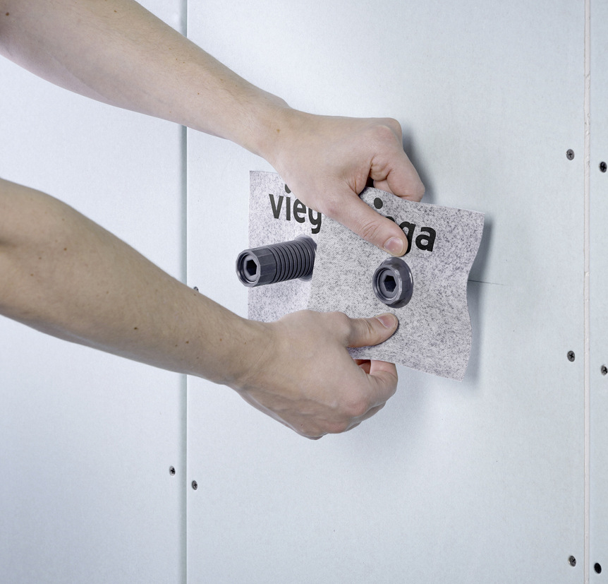 Sanitärräume und Bäder müssen gegen in das Mauerwerk eindringende Feuchtigkeit geschützt werden, um Bauwerksschäden zu verhindern. Dabei kommt es auf jedes Detail an. Denn selbst geringe Wassermengen können über die Zeit beträchtliche Schäden verursachen. Mit der montage¬freundlichen, nach DIN 18534 geprüften Wandscheiben¬abdichtung stellt Systemanbieter Viega sicher, dass solche Schäden an Armaturenanschlüssen zuverlässig und ohne viel Mehraufwand verhindert werden.