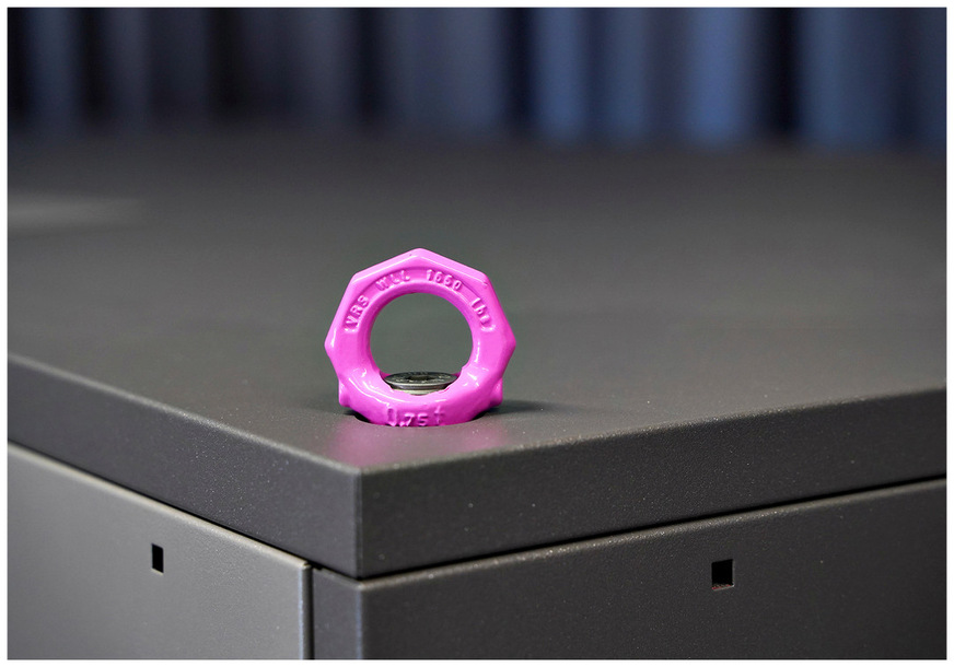 Eine Transporthilfe mit vier schraub- und drehbaren Kranösen rundet das Zubehörangebot ab. Diese Ösen werden an der Oberseite des Geräts befestigt und ermöglichen den Transport per Kran. Die wiederverwendbaren Ösen werden in einem Transportbeutel geliefert, was sie besonders für Installationsbetriebe mit hoher Nachfrage geeignet macht.
