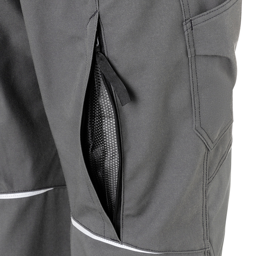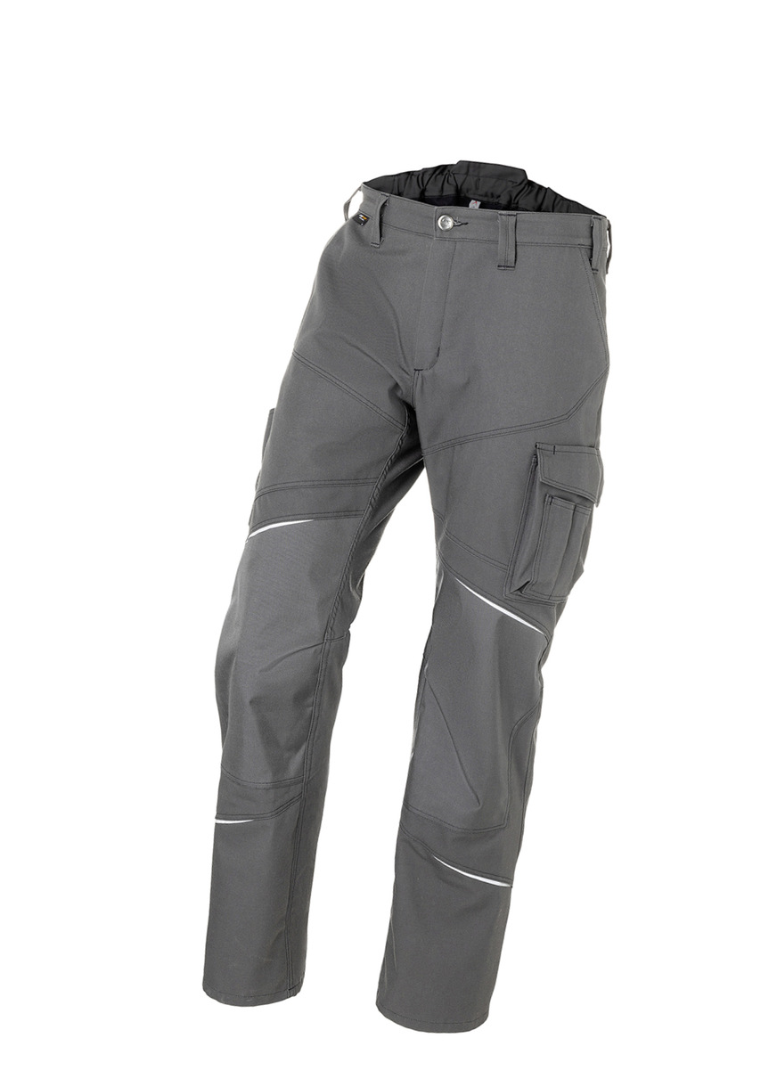 Die neue Thermohose aus der Workwearlinie Kübler Activiq erlaubt es Trägerinnen und Trägern, flexibel auf wechselnde Umgebungstemperaturen zu reagieren. Dafür sorgen das weiche, wärmende Innenfleece sowie die mit Reißverschluss ausgestatteten Ventilationsöffnungen und der Mesh-Einsatz an der Oberschenkelrückseite. Der elastische Bundeinsatz mit Nierenschutz unterstützt das angenehme Tragegefühl und hält den unteren Rücken warm. Viel Bewegungsfreiheit wird durch ergonomische Linienführung und vorgeformte Knie mit Bewegungszone gewährleistet. Um Stiefel leichter anziehen zu können, sind die Beinenden mit glattem Innenmaterial ausgestattet.