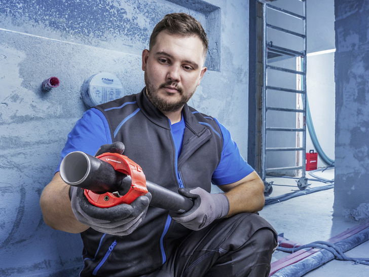 Hersteller von Rohrwerkzeugen und Rohrbearbeitungsgeräten, zeigt mit dem neuen, kompakten Rohrabschneider für Kunststoffrohre, dem Rocut Plastic Pro, wie einfach sich bereits verlegte Kunststoffrohre trennen lassen. Der Rohrabschneider passt bequem in eine Hand und braucht so wenig Platz, dass Anwender Kunststoffrohre sogar nahe an der Wand exakt, gerade und rechtwinklig trennen können. Dieses Werkzeug übernimmt das Trennen von jeweils zwei Rohrdurchmessern in einem – ersetzt also zwei Rohrabschneider. Er trennt PE- und PP-Rohre sowie Rohre aus dünnwandigem PVC. Rothenberger bietet den Rocut Plastic Pro in drei Ausführungen für unterschiedliche Rohrdimensionen an.