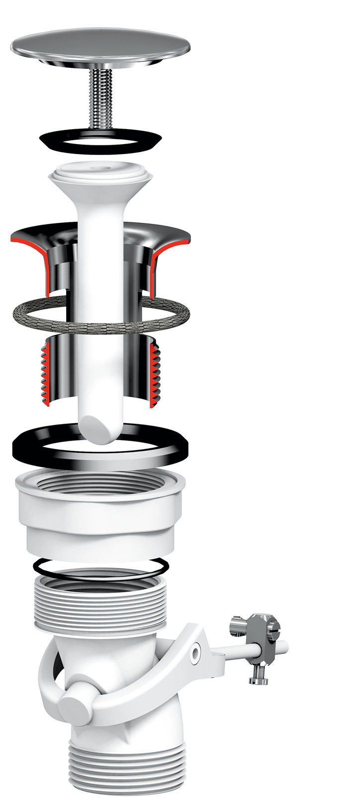 Das innovative Freilauf-Ablaufventil für Waschbecken unterscheidet sich durch seinen Magnetmechanismus, der den Ventilkegel präzise und elegant bewegt. Dadurch ist es leicht zu reinigen und Haare haben kaum eine Chance sich festzusetzen. Dank des Designs gibt es keine dauerhaften Hindernisse im Wasserfluss. Die Position des Stopfens und damit die Ablaufspaltgröße bleiben stets gleich, ohne dass Nachjustierungen nötig sind. Das Freilauf-Ablaufventil für Waschbecken lässt sich leicht ausrichten und dank des Feingewindes mit der Hälfte des üblichen Kraftaufwands abdichten.