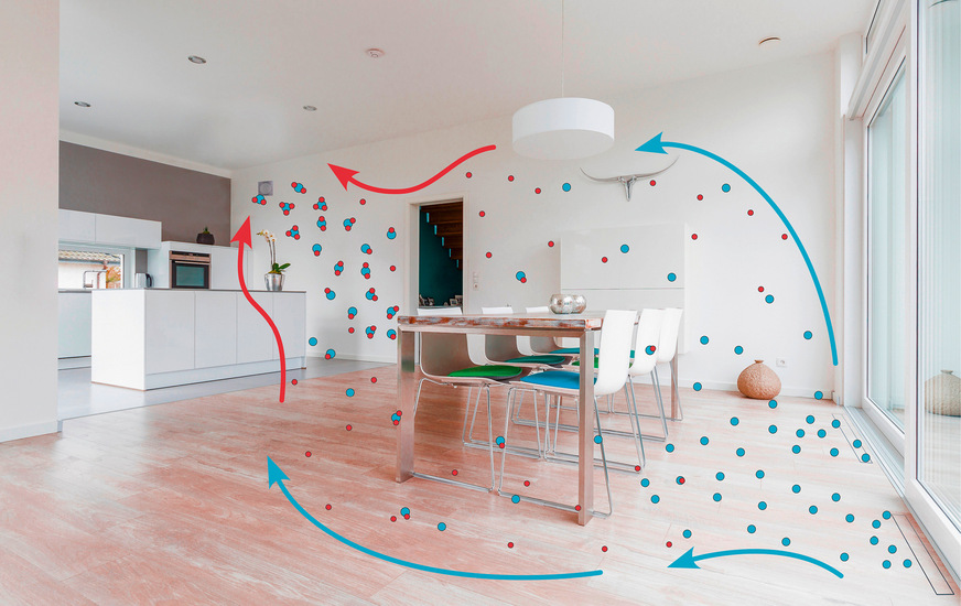 Das Luftaufbereitungssystem PluggVoxx pure von Pluggit wurde entwickelt, um Schadstoffe, Pollen und andere Allergene effektiv aus der Raumluft zu entfernen. Mit Ionisationstechnologie reinigt PluggVoxx pure die Luft aktiv von Feinstaub, Bakterien, Viren und unangenehmen Gerüchen. Zunächst werden negative und positive Ionen in die Luft abgegeben. Sie fangen die schädlichen Partikel wie Pollen, Staub, Schimmelsporen oder auch Viren und Bakterien auf und klumpen zusammen. Diese größeren Einheiten können deutlich leichter vom Filtersystem aufgefangen werden.