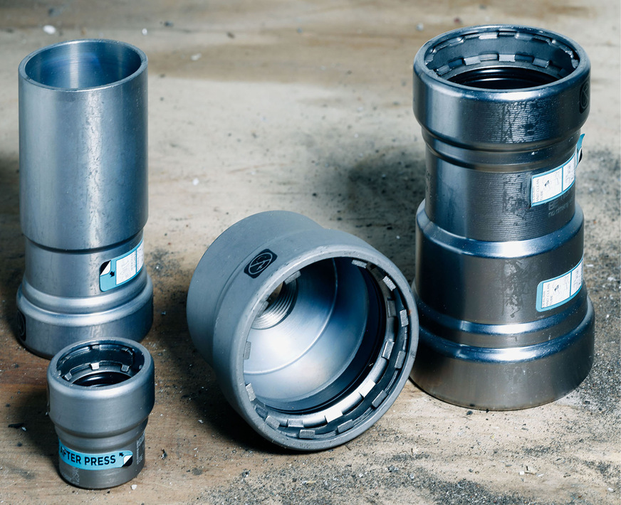 Sanha erweitert sein Portfolio um zwei neue Press-Systeme: „Heavy Steel Press“ bzw. „Heavy Steel Press Gas“ aus C-Stahl. Mit den Pressfittings lassen sich dickwandige Stahlrohre zeitsparend verpressen, statt zu schweißen. Die Rohrleitungssysteme sind u. a. für Heizungs-, Gas-, Kühl- oder industrielle Anwendungen geeignet.