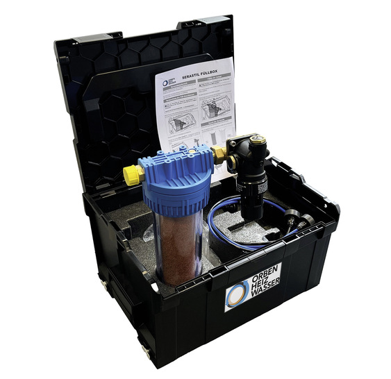 Vollentsalztes Ergänzungswasser schützt die Lebensdauer und Effizienz von Heizungsanlagen. Das gilt auch für Nachspeisungen von kleinen Mengen im Serviceeinsatz. Die neue Füllbox Serastil von Orben leistet genau dafür die normgerechte Aufbereitung des Nachspeisewassers nach VDI 2035 (sowie ÖNORM H 5195-1 und SWKI BT 102-1). Alle Bestandteile für eine normgerechte Befüllung sind einsatzbereit in einem Sortimo Systemkoffer mit Tragegriffen angeordnet.
