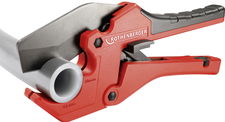 Wer im SHK-Gewerbe Kunststoffrohre verarbeitet und sie mit einer Schere trennt, brauchte bislang mehrere Kunststoffrohrscheren für kleinere und größere Rohrdurchmesser sowie unterschiedliche Rohrmaterialien. Das neueste Werkzeug aus dem Hause Rothenberger, Hersteller von Rohrwerkzeugen und Rohrbearbeitungsgeräten, ersetzt dank ihrer 2-in-1-Funktion zwei Scheren: Die Kunststoffrohrschere Rocut 42 Twin Cut trennt Rohre im Direktschnitt oder im Ratschenschnitt. Sie schaltet automatisch zwischen den beiden Funktionen um und trennt Rohre bis 42 mm Durchmesser mit der jeweils besten Methode, sodass der Schnittvorgang schneller geht als bei Scheren, die nur im Ratschenschnitt trennen. Da die PTFE-Beschichtung des Messers die Reibung zwischen Rohr und Messer reduziert, schneidet die ROCUT 42 Twin Cut selbst Mehrschichtverbundrohre mit geringem Kraftaufwand.