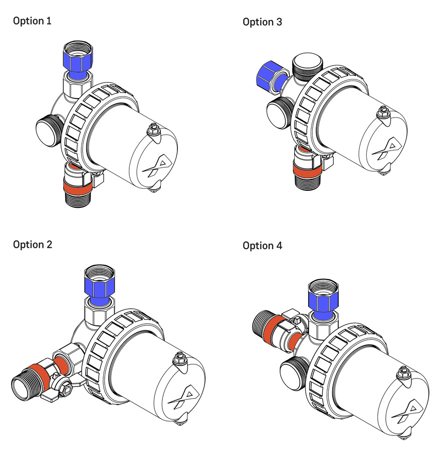 Der platzsparende Magnetfilter (Abmessung 140 mm x 95 mm) ist für die Installation in Rohrleitungen vorgesehen, die direkt von der Wand oder vom Kessel kommen. Er kann in mehrere Richtungen angeschlossen werden, beispielsweise an vertikale, horizontale oder 90°-Rohrleitungen. Die freie Wahl des Anschlusses erleichtert bei beengten Platzverhältnissen die Montage und sorgt während der Wartungs- und Reinigungsarbeiten für einen guten Zugang zu Lüftungsöffnung und Ablassventil.