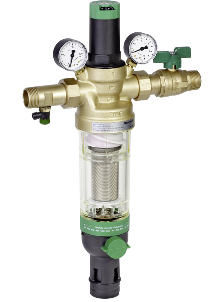 Die Hauswasserstation Braukmann HS10S von Resideo vereint einen Feinfilter mit einem Druckminderer, Rückflussverhinderer und einer Absperrarmatur in einem Gerät. Ausgestattet mit einem patentierten Rückspülsystem sichert die Hauswasserstation laut Pressemitteilung ununterbrochen die Versorgung mit hygienisch einwandfreiem Trinkwasser. Das Einspülen von Schmutzpartikeln und Fremdkörpern, die größer als 100 μm (0,1 mm) sind, wird durch ein Edelstahlfiltersieb verhindert. Für die Reinigung des Filters kommt in der Hauswasserstation die Double-Spin-Technologie zur Anwendung. Ein in der Kartusche integrierter rotierender Impeller reinigt mittels eines gebündelten Wasserstrahls den Filter hocheffizient von innen nach außen. Eine nachrüstbare Rückspülautomatik kann die notwendige Spülung komfortabel übernehmen.