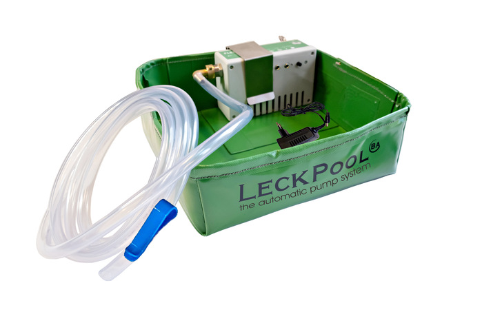 Installationsprofis, die im Gebäudebestand tätig sind, kennen das Problem: Wasser muss aus dem System abgelassen werden, aber es ist kein ausreichend großes bzw. passendes Auffangbehältnis zur Hand. Falls doch, fehlt meist die Möglichkeit zur zeitgerechten Entleerung. Das Unternehmen BA-Bachler hat sich dieser Problemstellung angenommen und bietet eine praxisgerechte Lösung an: Der Leckpool kombiniert eine stabile und gleichzeitig flexible PVC-Auffangwanne mit einer elektronisch gesteuerten Pumpe, die bei entsprechendem Füllstand das Wasser über einen 330 cm langen Schlauch in den nächsten Abwassereinlauf fördert. Alles automatisch geregelt, damit der Installateur nicht unnötig lange dabeibleiben muss.