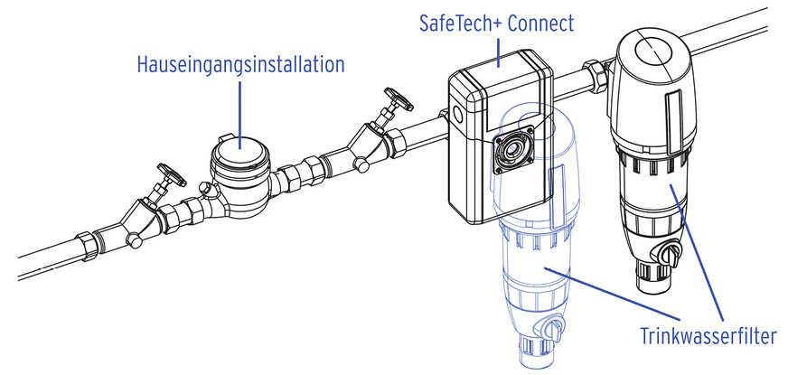 Als Leckageschutz-Armatur schließt auch der SafeTech+ Connect bei Überschreitung erlernter Parameter und ungewöhnlicher Verbräuche die Leitung selbständig ab. Zudem führt die Armatur in regelmäßigen Abständen einen Mikroleckagentest durch und stellt somit auch kleinste undichte Stellen fest. Weiteres kluges Feature: Ist die Armatur mit dem Internet verbunden, informiert sie im Störungsfall via E-Mail den Hausbesitzer. Der SafeTech+ Connect Leckageschutz kann auch als ‚Schwarm‘ arbeiten. Eine Einheit fungiert dabei als Schaltzentrale, registriert die empfangenen Daten der angebundenen Geräte, wertet sie aus und wird entsprechend aktiv.