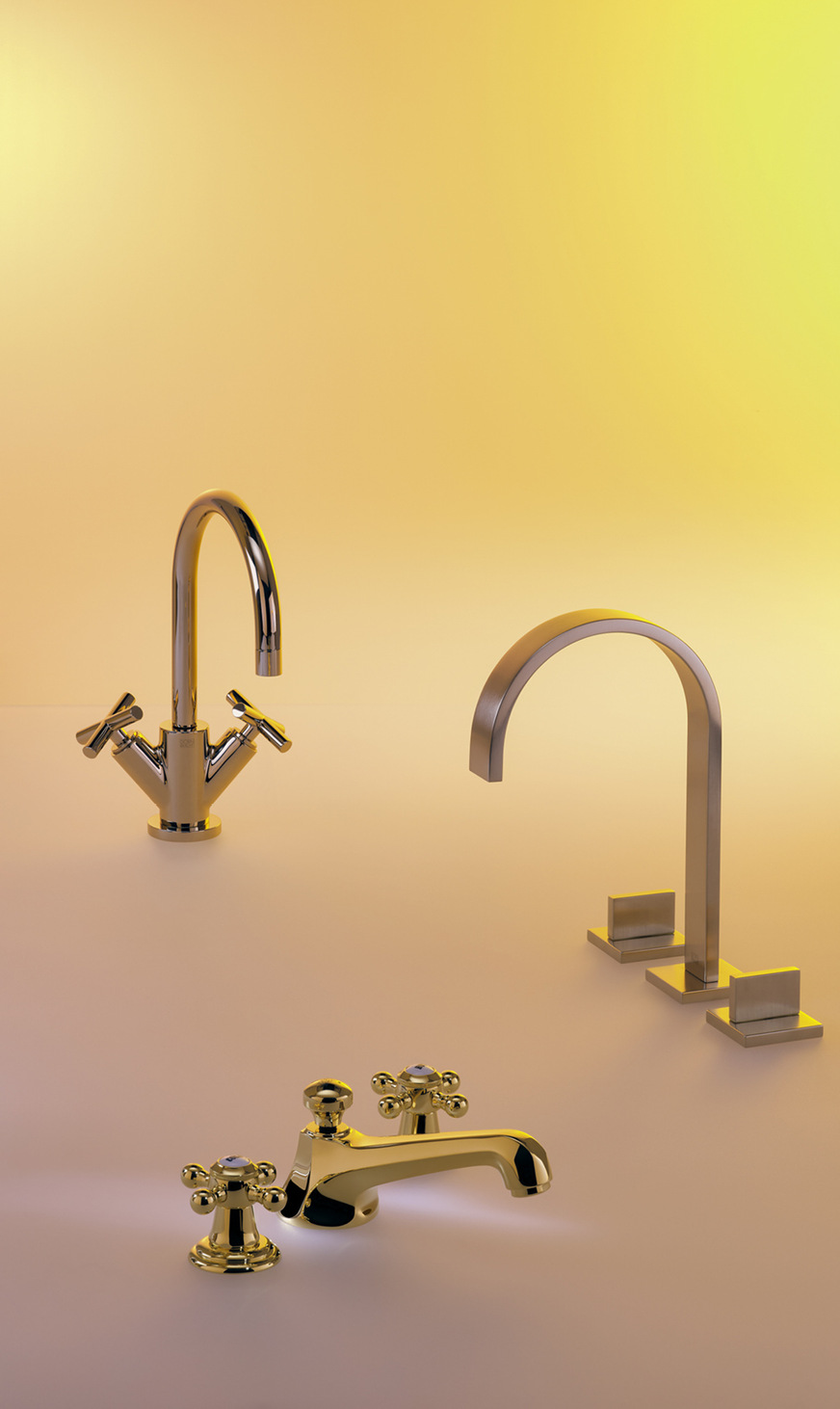 Gold, Messing und Champagne– mit diesen Oberflächen beweist der Hersteller Dornbracht sein Gespür für gegenwärtige Entwicklungen im Interior Design. Für die Fertigung der gebürsteten Oberflächen wendet Dornbracht ein besonders aufwendiges Verfahren an: Alle Teile der Armatur werden zunächst einzeln und von Hand in einer fest vorgegebenen Richtung und Struktur gebürstet. Diese Aufgabe übernehmen speziell von Dornbracht ausgebildete Mattierer. Während des anschließenden Veredelungsprozesses setzen sich die einzelnen Metallionen bis in die filigransten Vertiefungen der Bürstenstriche ab. Das Ergebnis des aufwendigen Beschichtungsprozesses sind qualitativ hochwertige Oberflächen, die die präzisen Formen der Dornbracht-Armaturen perfekt in Szene setzen.
