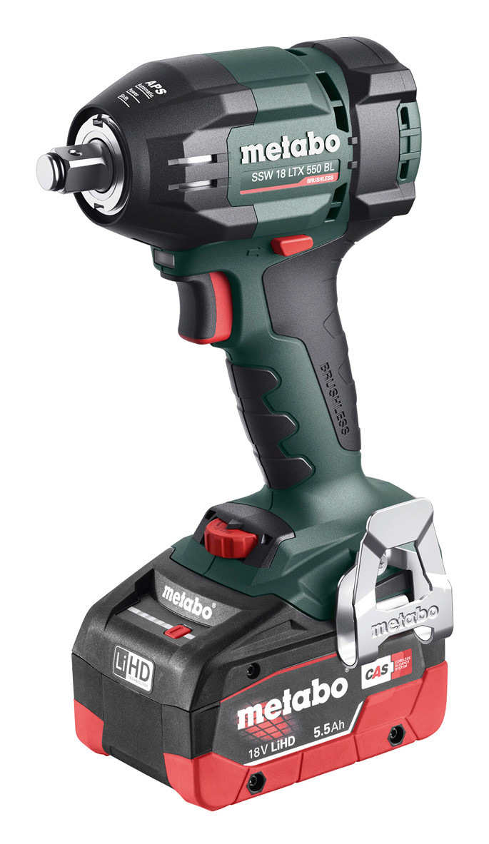 Das Gerät ist mit einem Brushless-Motor ausgestattet, der in Verbindung mit den 18-V-Akkus des Cordless Alliance Systems (CAS) eine lange Laufzeit und hohe Leistung bietet. Für anspruchsvolle Arbeiten empfiehlt Metabo den Einsatz von LiHD-Akkus mit einer Kapazität von 5,5 Ah oder 8,0 Ah.
