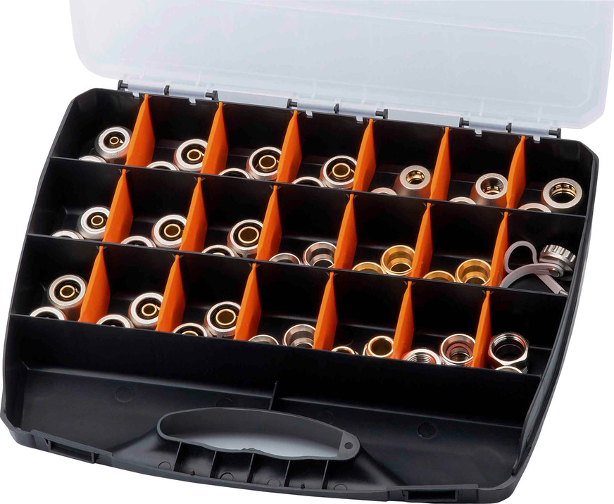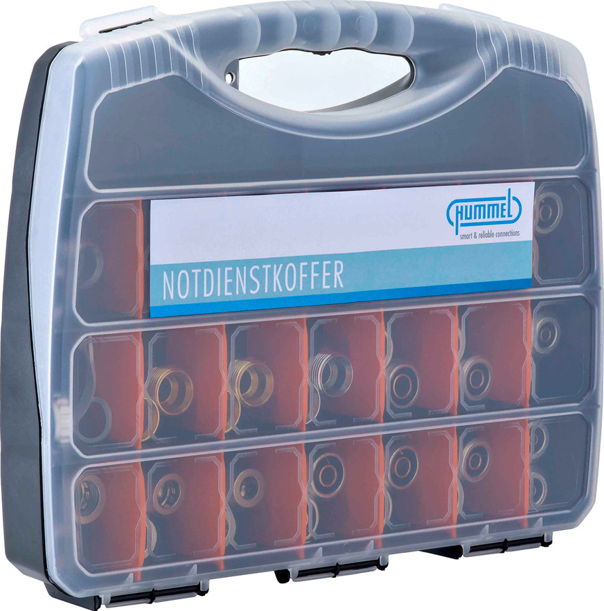 Ob bei Rohrbrüchen, Leckagen oder bei Schäden an schwer zugänglichen Stellen: Mit dem übersichtlich gehaltenen Notdienstkoffer im Servicewagen stehen passende Verbindungen sofort griffbereit zur Verfügung. Installateure können damit auch bei unerwarteten Einsätzen, etwa an Sonn- und Feiertagen oder außerhalb der Öffnungszeiten des Fachhandels, umgehend reagieren. Eine wiederholte Anfahrt zum Kunden entfällt, da der Notdienstkoffer bereits mit allen gängigen Verbindungen bestückt ist. Die Verschraubungen und Anschlüsse können sowohl in Heizungsanlagen als auch in Trinkwasseranlagen verwendet werden.