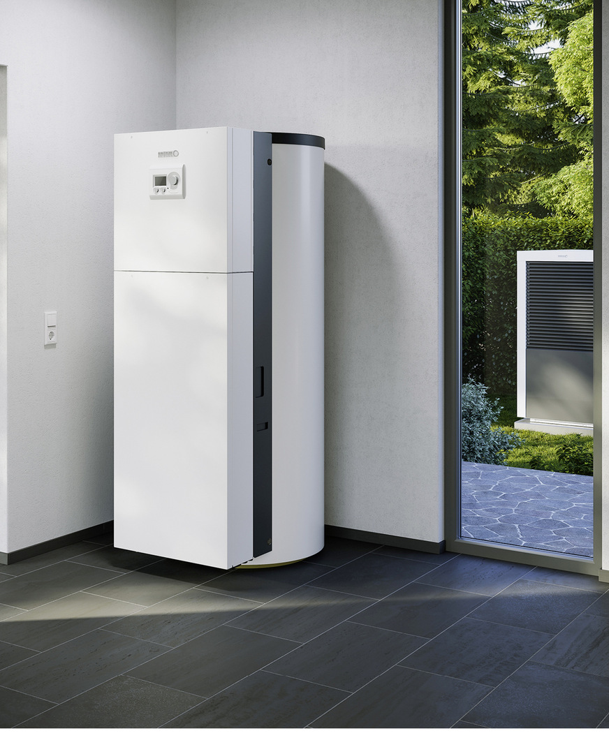 Darüber hinaus kann der Pufferspeicher durch die intelligente Trennung auch eine Kühlung im System realisieren. Dies erfolgt oberhalb des Taupunktes. Im Ergebnis entsteht durch die Kombination eine Systemeinheit (Unit), die eine ideale Ergänzung zu den Luft-/Wasser-Wärmepumpen BLW NEO mit 8 bzw. 12 kW Nennwärmeleistung bietet. Um einen problemlosen Transport zu gewährleisten sowie die Einbringung zu erleichtern, werden Speicher und Hydraulikpaket getrennt geliefert. Der industrielle Grad der Vorfertigung erhöht die Montagesicherheit und reduziert den Installationsaufwand vor Ort. Neben der Energieeffizienz-klasse B können beim ETG Luft auch die kompakten Abmessungen und die Höhe, nur 1.920 mm, überzeugen.