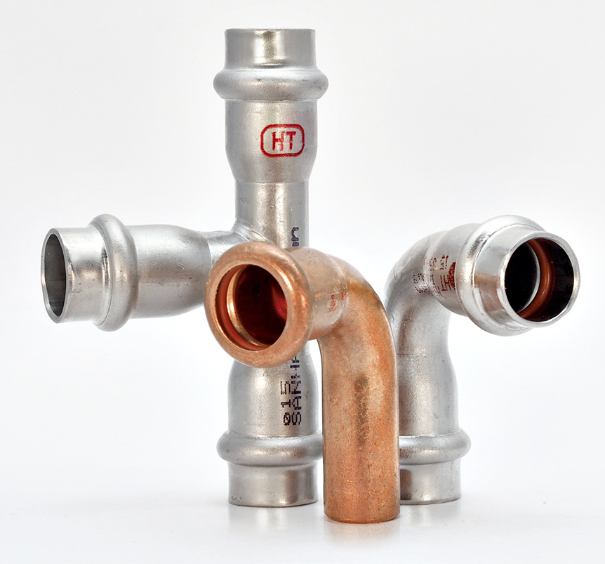 In der Regel werden für die Solarthermie Zweikreisanlagen installiert, bei der im ersten Kreis ein Wasser-Glykol-Gemisch eingesetzt wird. Diese Verrohrung muss hohe Temperaturen verkraften sowie glykol- und druckbeständig sein. Im Außenbereich muss zudem die notwendige Witterungs- und Korrosionsbeständigkeit gegeben sein. Diese Voraussetzungen erfüllen die Serien Sanha-Press Solar aus Kupfer sowie NiroSan Industry und NiroTherm Industry aus Edelstahl.
