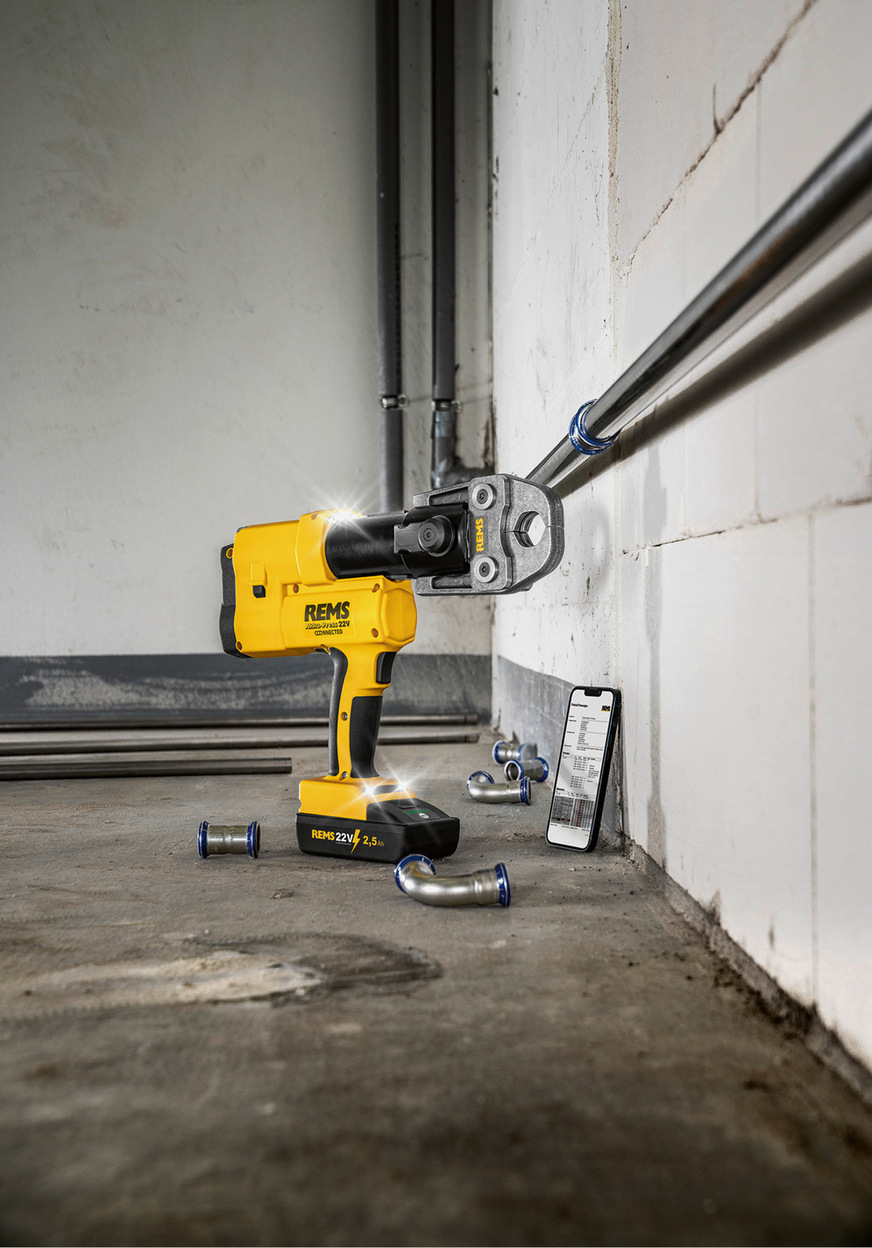Mit REMS Akku-Press 22 V Connected haben Sie immer volle Kontrolle über alle durchgeführten Pressungen. Während dem Arbeiten durch das Pressdruck-Monitoring, direkt im Anschluss durch die Ergebnisanzeige im OLED-Display (mittels lachendem oder traurigem Smiley) und jederzeit, da alle Mess-/Pressdaten sicher auf der Maschine gespeichert werden. Diese Daten sind Mess-/Pressdaten, das Erstellen von Protokollen mit Texten, Bildern und mit eigenem Firmenlogo, die Konfiguration des Produkts, die Geolokalisierung der Pressorte und vieles mehr. Zu jeder Pressung kann eine Sprachnachricht aufgenommen, in editierbaren Text umgewandelt und in ein Protokoll integriert werden. Einstellbare Nutzungssperren begrenzen die Verwendung und erschweren den Diebstahl des Geräts