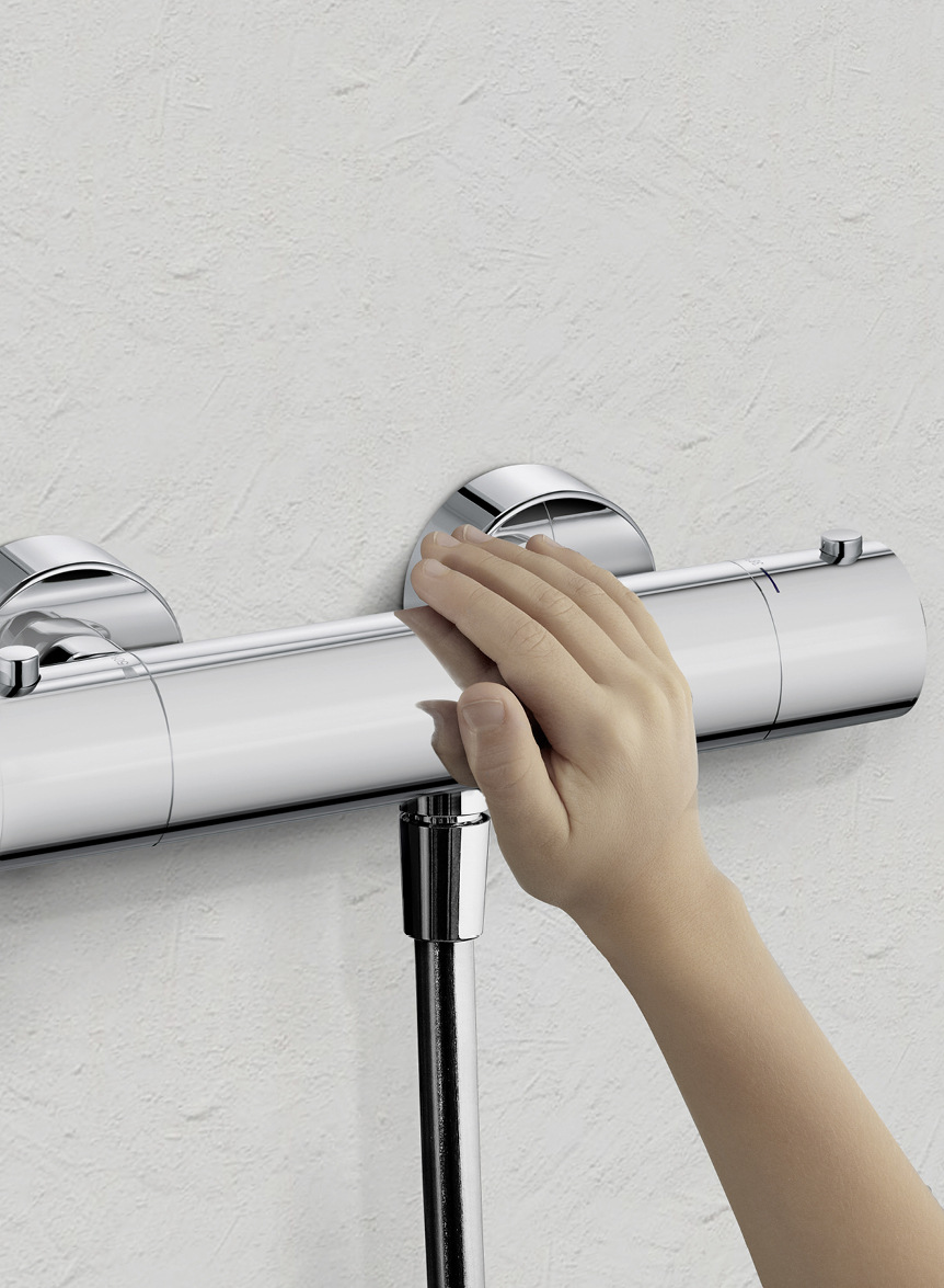 Thermostatarmaturen im Bad bieten höchsten Bedienkomfort. Denn mit ihnen lässt sich die Wassertemperatur im Nu exakt einstellen, und Temperaturschwankungen gleichen sie automatisch in Sekundenschnelle aus. Ihre standardmäßige Heißwassersperre bei 38° C, die nur durch aktives Entriegeln eines Sperrknopfs aufgehoben werden kann, senkt zudem die Gefahr von Verbrühungen. Noch mehr Schutz bietet jetzt der Sauerländer Armaturenspezialist Kludi. 17 Modelle seiner Thermostatarmaturen für Wanne oder Dusche lassen sich mit wenigen Handgriffen optional mit einem Temperaturbegrenzer ausstatten, der standardmäßig im Lieferumfang enthalten ist. Der Begrenzer lässt das Wasser nie heißer als 43° C werden. Damit ist komplett ausgeschlossen, dass es zu Verbrennungen kommen kann, weil aus Versehen der Heißwassersperrknopf gelöst worden ist. Ideal für Anwendungen in Hotels, Pflegeeinrichtungen und überall dort, wo Sicherheit besonders großgeschrieben wird.