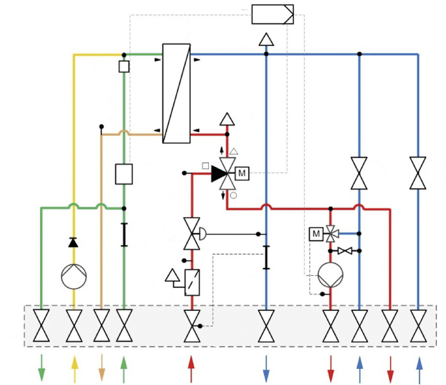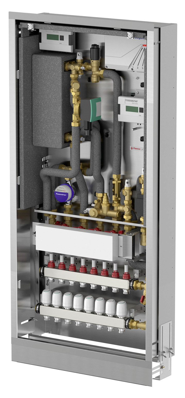 Die Energiewende, die insbesondere eine Wärmewende ist, sowie innovative, regenerative und zukunftsorientierte Erzeuger wie die Wärmepumpe gehen Hand in Hand. Für eine energiesparende Warmwasserbereitung und Raumtemperierung bietet Flamco nun auch eine Wohnungsstations-Serie, die speziell für die Anwendung von zwei Primärquellen ausgelegt ist: LogoMatic G2 4RS. Diese ist, im Gegensatz zu herkömmlichen Stationen, welche mittels einem 2-Leitersystem arbeiten, für ein 4-Leitersystem ausgelegt. Über zwei Vorlaufleitungen mit unterschiedlichen Primärtemperaturen (einem Hoch- und einen Niedertemperaturkreis) kann die Warmwasserbereitung sowie Heizungsversorgung mit verschiedenen Primärtemperaturen realisiert werden. Das kann wesentlich zu einer Effizienzsteigerung des Gesamtsystems beitragen.