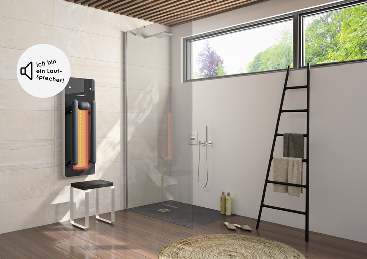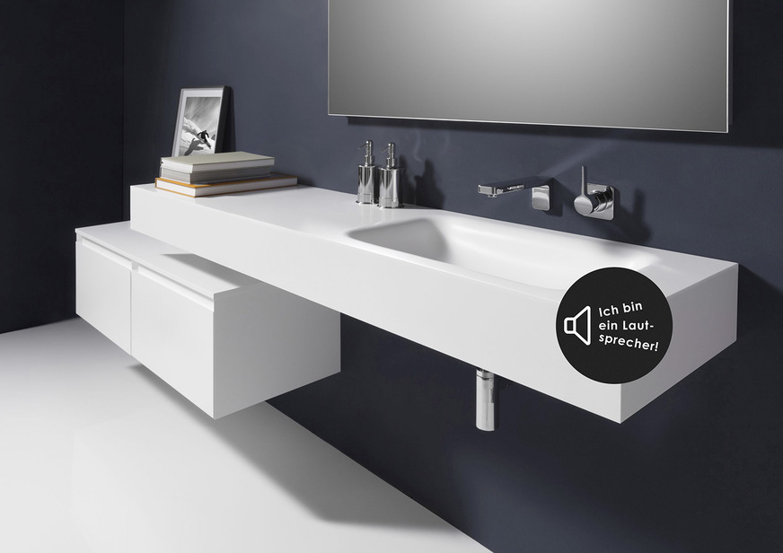 Repabad unterstützt den Musikgenuss mit „klingenden“ Badprodukten. Unsichtbar in Badewanne, Badspiegel, Infrarotelement oder Waschtischplatte werden Bluetooth Receiver inklusive Lautsprechern verbaut und machen diese zum Klangkörper. Bedient wird das Ganze über das Wiedergabemedium. Auf diese Weise kann Musik im eigenen Bad oder im Hotelbad erklingen. Das Wiedergabegerät wird via Bluetooth verbunden und schon erklingt die Lieblingsmusik über den Spiegel, die Mineralwerkstoff-Waschtischplatte oder beim Entspannen vom stressigen Arbeitstag aus dem Infrarotpaneel.