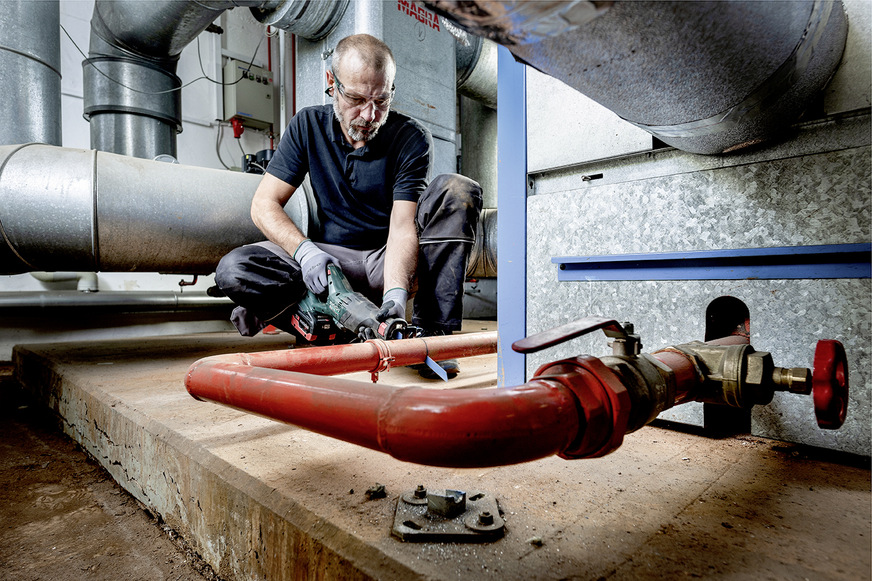 Licht ins Dunkel bringt zudem ein LED-Arbeitslicht, das die Schnittstelle optimal ausleuchtet. Sägt der Handwerker zum Beispiel durch Abwasserrohre, halten spezielle Dichtungsringe Feuchtigkeit und Dreck ab.