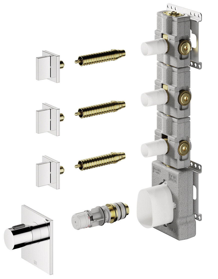 Dornbracht hat sein komplettes Unterputz-Programm überarbeitet und dabei großen Wert auf die Installations- und Wartungsfreundlichkeit aller Komponenten gelegt. Mit der optimierten xGrid-Schiene bietet der Armaturenhersteller nun ein System an, das die präzise, schnelle und unkomplizierte Montage von anspruchsvollen Badlösungen ermöglicht. Mit der Einführung der neuen xGrid-Schiene geht eine Optimierung der Unterputzkörper einher. Diese sind unter anderem mit einem neuen und Dämmkörper ausgestattet, der Schwitzwasser und Geräusche verhindert. Die Entkopplung der UP-Körper vom Montageblech sorgt für eine weitere Reduzierung der Geräuschbelastung.