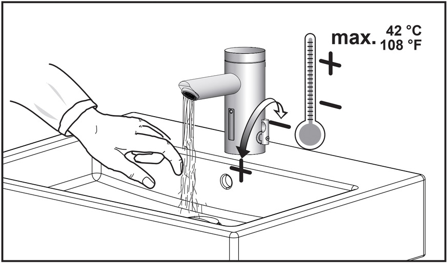 Die Conti+ Lino AS L13 von Conti bietet patentierte, thermostatisch geregelten Verbrühschutz und erhöht die Sicherheit bei Kaltwasserausfall. Denn in Anlehnung an die DIN EN 1111 sperrt diese Heißwasserzufuhr normgerecht nach maximal 300 ml Wasserfluss ab; auch Druckschwankungen im Kalt-/Warmwassersystem werden ausgeglichen. Die Infrarot-Sensorarmatur lässt sich über den auf der rechten Seite angebrachten kleinen Hebel für einen Temperaturbereich von 15°C bis 40° C einstellen. Durch die maximale Mischtemperatur von 40°C bietet diese Armatur insbesondere im barrierefreien Bad und in anderen sensitiven Bereichen wie Kindergärten und Seniorenheimen einen sinnvollen Schutz vor Verbrühungen. Ein weiteres Plus für Installateure: Dadurch, dass der Thermostat bereits in der Armatur verbaut ist, ist die Montage schnell und einfach.