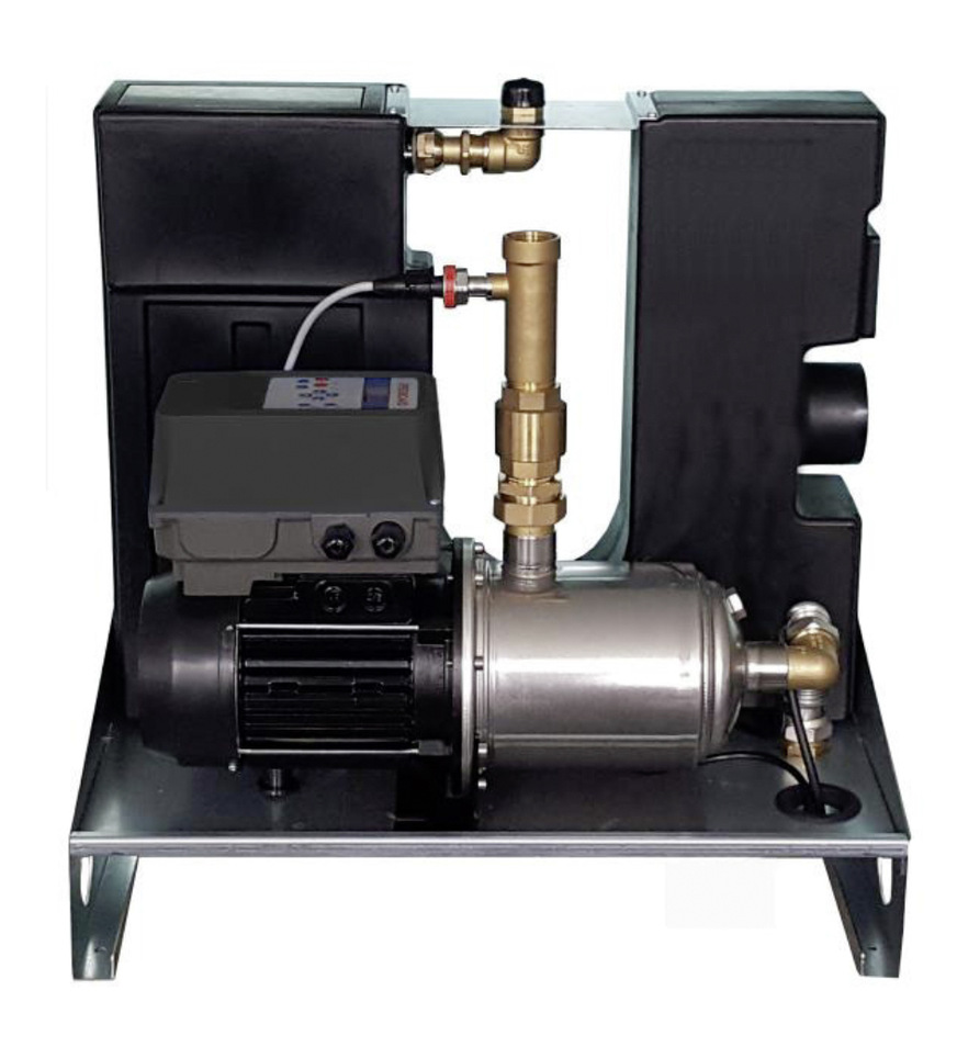 Empfehlenswert ist grundsätzlich eine drehzahlgeregelte bzw. frequenzgesteuerte Doppelpumpenanlage. Dies gewährleistet einen leisen Betrieb und bringt Sicherheit, denn die zweite Pumpe übernimmt automatisch und zuverlässig die Versorgung beim Ausfall der ersten. Durch alternierende Betriebsweise werden beide gleichermaßen genutzt. Spitzenbedarf decken sie gemeinsam ab. Dies ist das Konzept von iWater Wassertechnik GmbH & Co. KG in Asbach/Westerwald. Deren Trinkwassertrennstationen leisten zwischen 3,2 und 14 m³/h und erreichen Förderhöhen von 34-81 m, wahlweise mit Frequenzsteuerung.