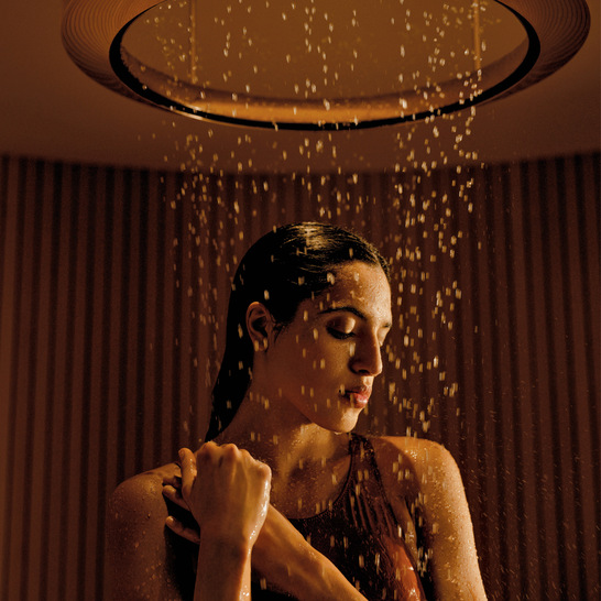 Tempest Rain simuliert dagegen einen tropischen Regen: Das Wasser wird in die Höhe geschossen, bis es seinen Scheitelpunkt erreicht und die Schwerkraft es wieder nach unten zieht. Während die Tropfen fallen, kreuzen sie einander. Die Geschwindigkeit, mit der die Tropfen auf die Haut treffen, wird dabei nicht wie üblich über den Wasserdruck, sondern über die Gravität erzeugt. So wirken die Tropfen besonders sanft – wie bei natürlichem Regen – auf unseren Körper ein.